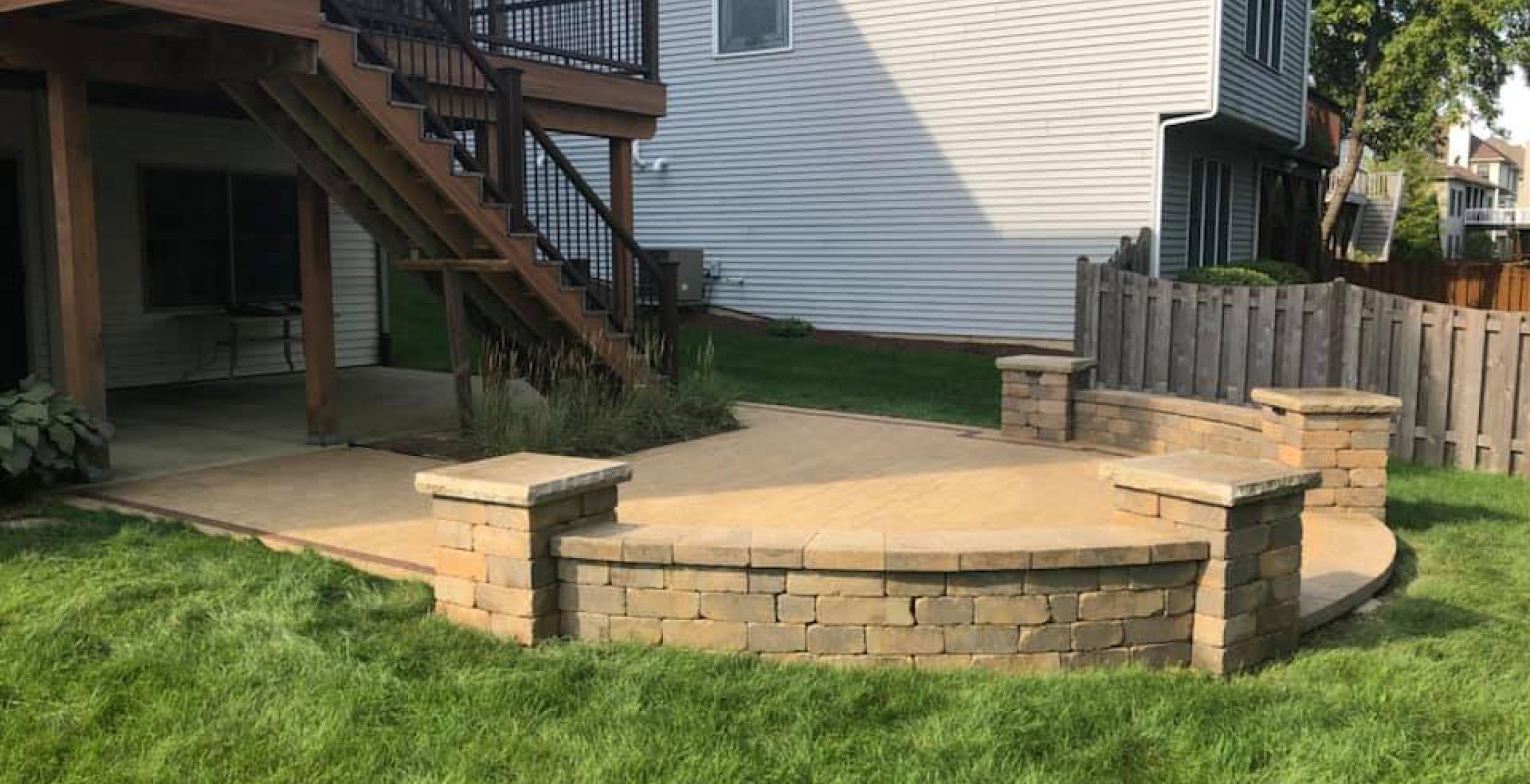 brick patio with retaining walls